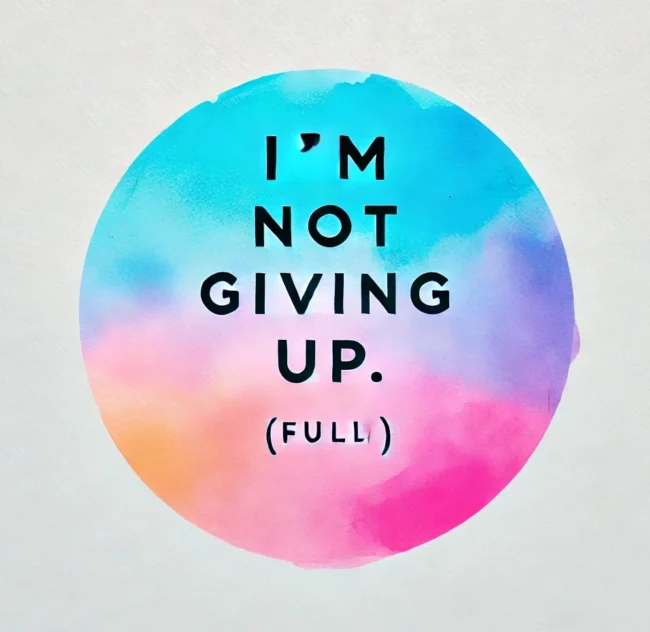 「I'm not giving up.」は、何かをあきらめない意志を示すために使われ、困難な状況でも努力を続ける姿勢を表現します。