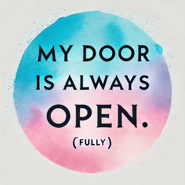 /maɪ ˈdɔːr ɪz ˈɔːlweɪz ˈəʊpən/