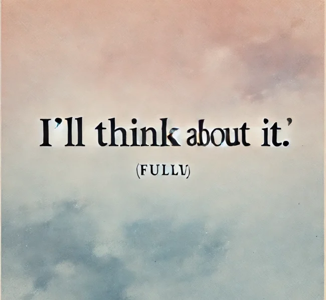 • “How about joining us for the weekend trip?”   “I'll think about it.