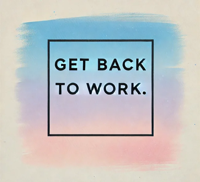 「Get back to work.」は、「仕事に戻って」「仕事を再開して」と促すために使われ、休憩や雑談を終えて作業に集中させたいときに使用されます。