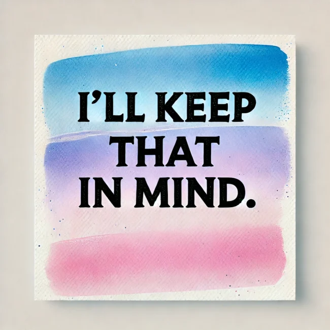 「I'll keep that in mind」は、「覚えておくよ」や「心に留めておくよ」といった意味で、アドバイスや注意を受け取った際などに使います。