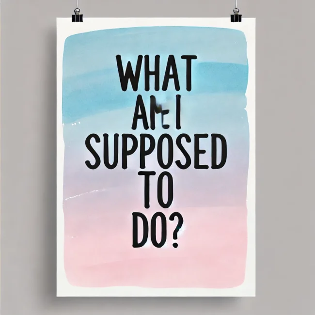 「What am I supposed to do?」は、困惑したり、指示が不明確な状況で、自分が何をすべきかを尋ねたり、助けを求める際に使われます。