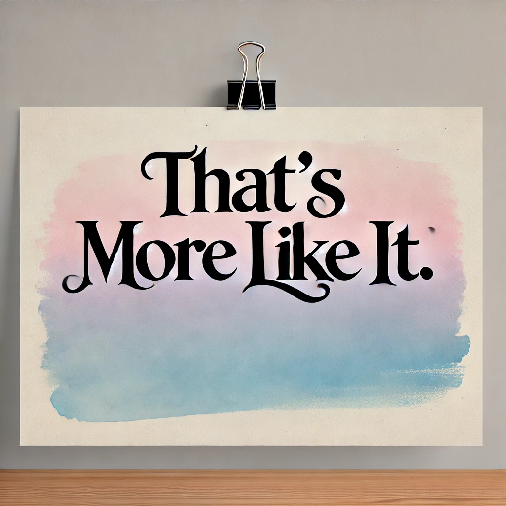 「That's more like it」は、「そうそう、それでこそ」といったニュアンスで、改善や期待に近づいたことを伝えたいときに使われます。