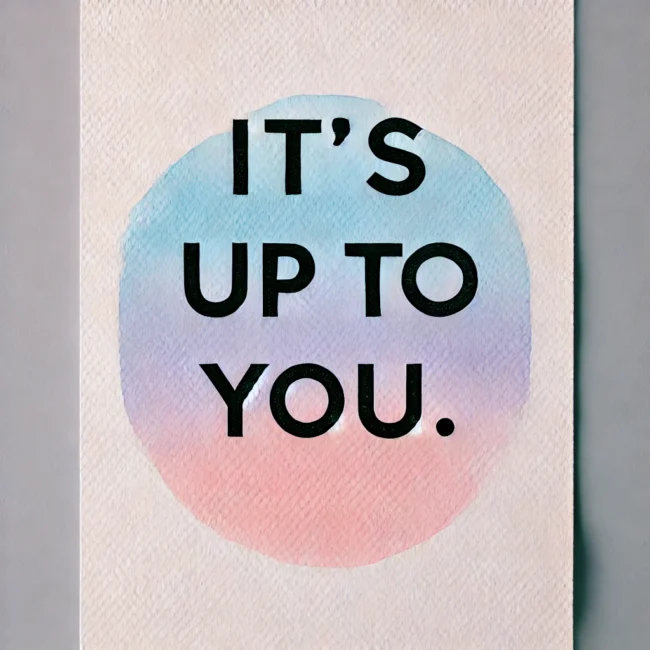 「It's up to you」は、「あなたに任せるよ」「あなた次第だよ」と相手に決定権を委ねる際に使われます。