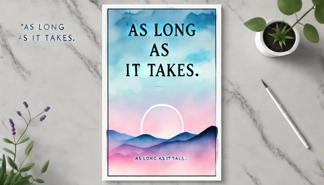 「As long as it takes.」は、何かを終わらせるまで時間がかかっても良いことや、どれだけでも頑張るという意思を示す表現です。